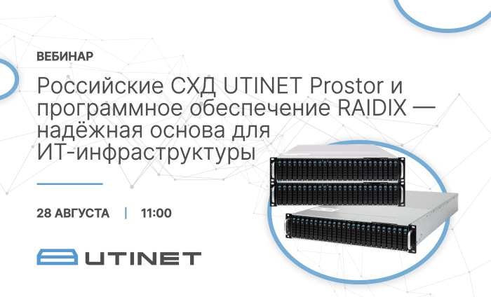 Компания UTINET совместно с разработчиком ПО RAIDIX приглашает ИТ-специалистов, архитекторов и интеграторов на вебинар, посвящённый отечественным решениям в области систем хранения данных.