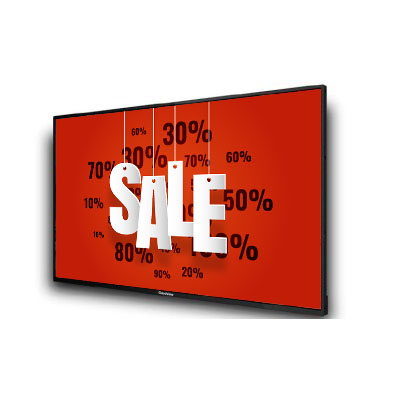 Промышленный дисплей 55″ Full HD с яркостью 600 нит. Используется для трансляции рекламы, расписаний и видеоконтента. Работает непрерывно 24/7, управление – через локальный или облачный интерфейс.